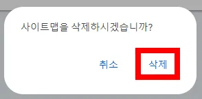 5. "사이트맵을 삭제하시겠습니까?"라는 창이 뜨면 '삭제' 버튼을 클릭합니다.