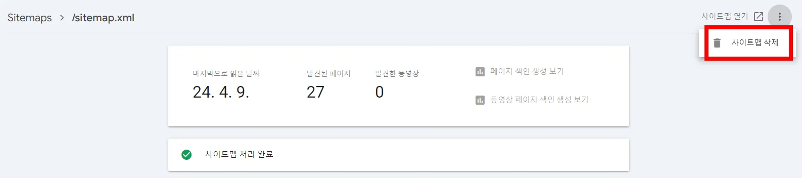 사이트맵 삭제 및 재등록 방법