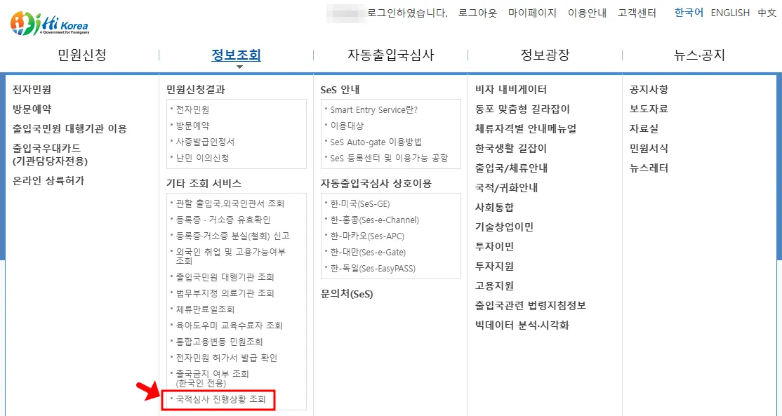 국적 심사 진행상황을 조회하는 방법