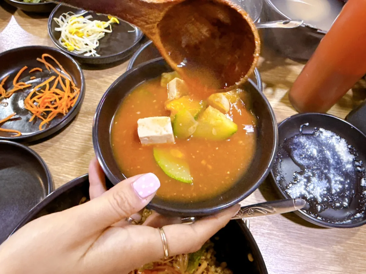 직원분이 찌개랑 국물을 놓으실 때 그릇이 너무 뜨거워서 화상을 입을 수도 있기 때문에 직원분이 세팅을 마칠 때까지 가만히 계시다가 끝나면 드시면 됩니다.