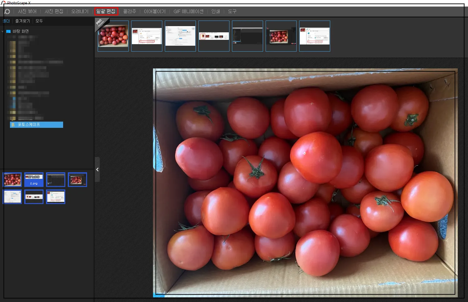 포토스케이프 X를 실행하여 상단에 '일괄 편집'을 선택하고 변환하고자 하는 사진을 오른쪽 화면에 끌어 놓습니다.