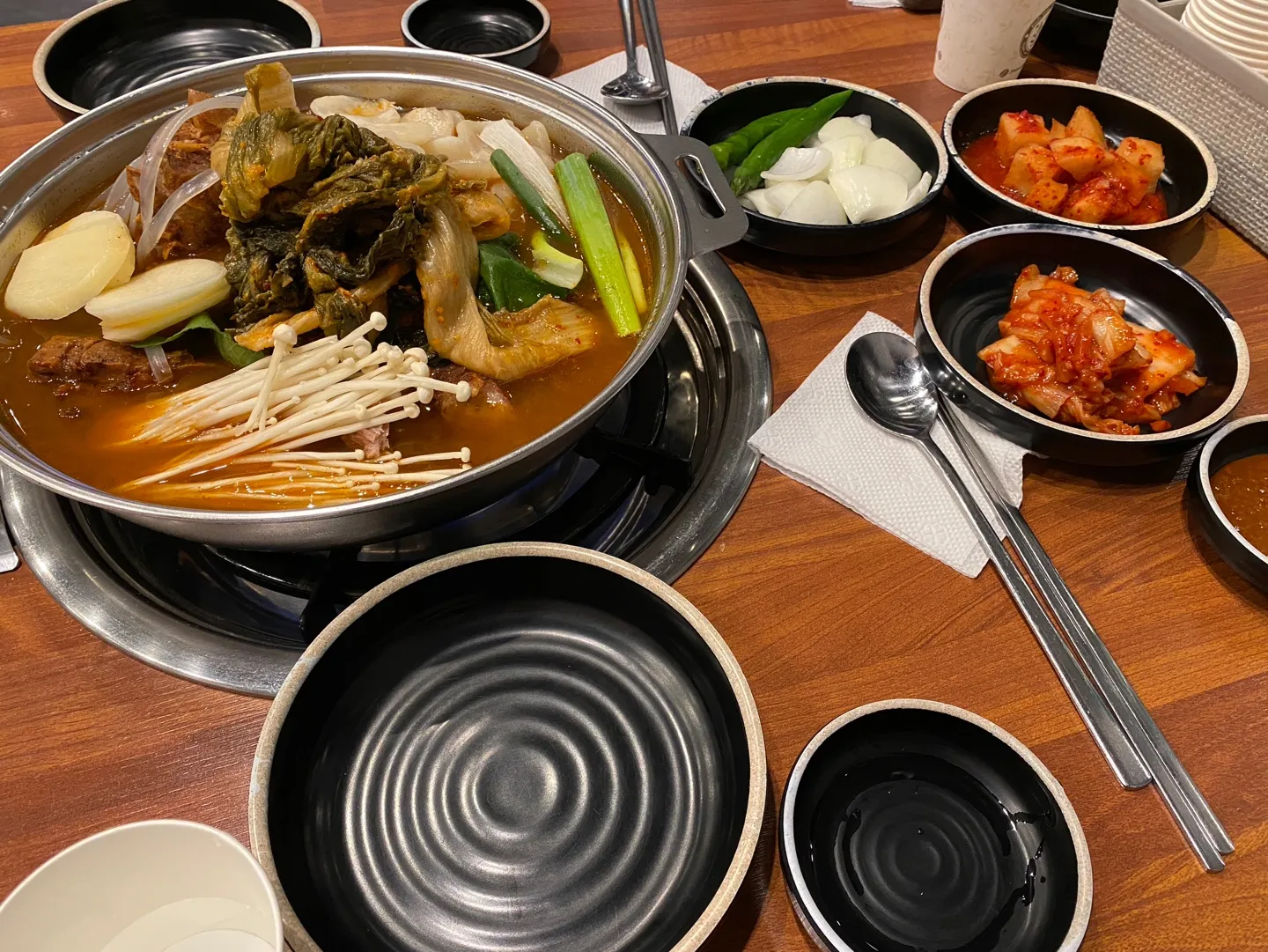 조금 기다리니 직원분이 감자탕과 밑반찬을 가져다주셨어요.