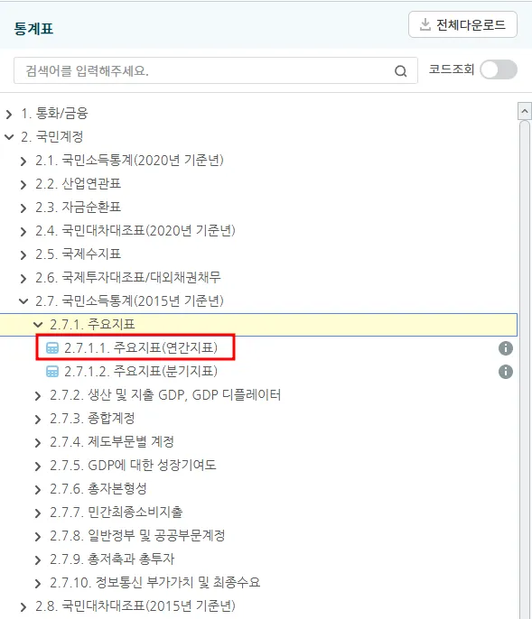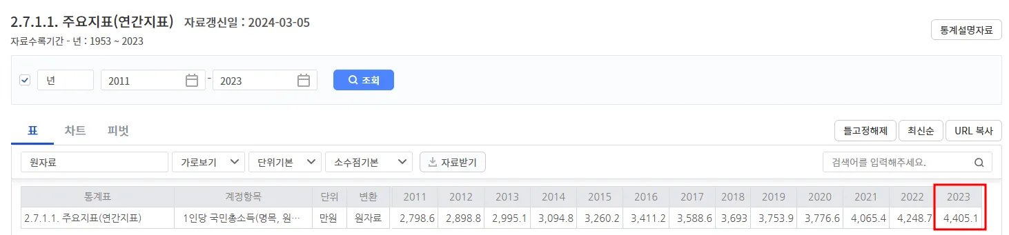 연도별 1인당 국민총소득(GNI) 확인 방법