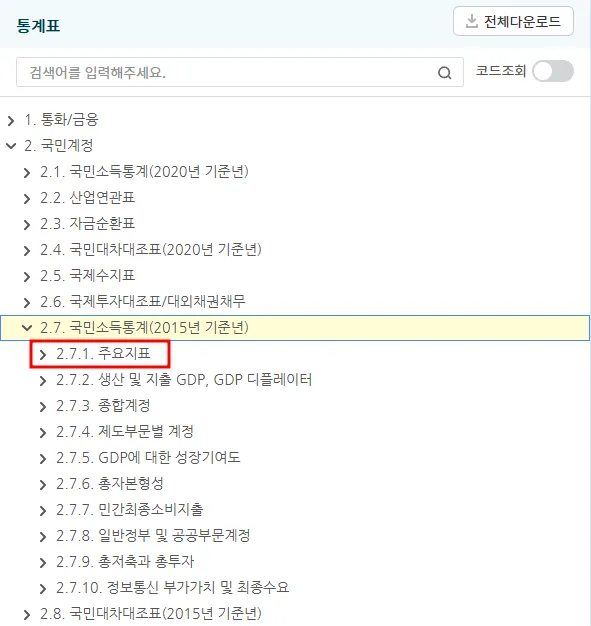 연도별 1인당 국민총소득(GNI) 확인 방법