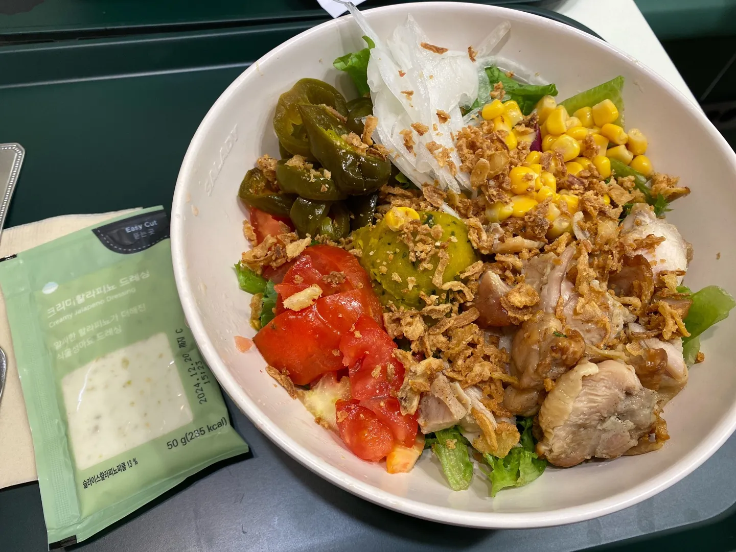 예전엔 샐러드를 먹는다고 하면 풀떼기 먹는다는 생각이 들고 든든하지 않은 거 같은 느낌이었는데요. 요새는 정말 푸짐하고 재료도 다양하게 나오더라고요. 정말 든든했어요.