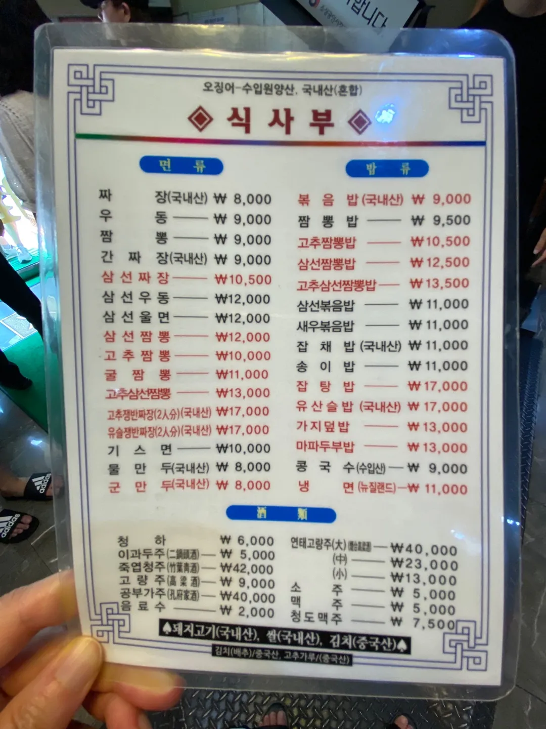 손님이 워낙 많아 음식 조리에 시간이 소요돼서 그런지 대기 중에 메뉴판을 미리 주시더라고요. 주문을 미리 하고 곧 자리가 나면 들어갑니다. 저희는 성인 남자 2, 여자 2이었는데요. 새우볶음밥(11,000원) , 간짜장(9,000원), 삼선짬뽕(12,000원), 가지튀김(19,000원), 깐풍기(33,000원)를 주문해서 총 84,000원이 나왔어요.