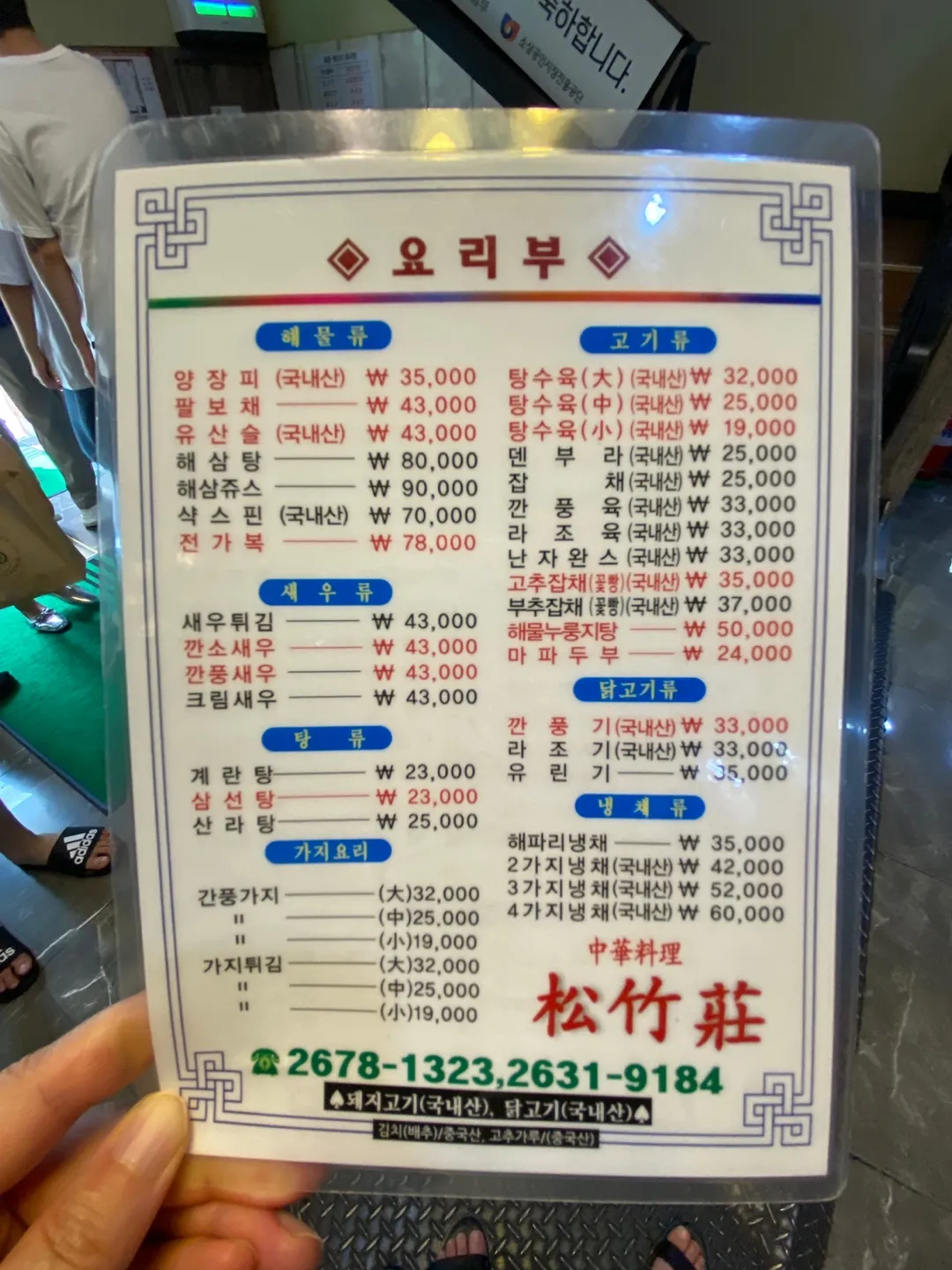 송죽장 메뉴