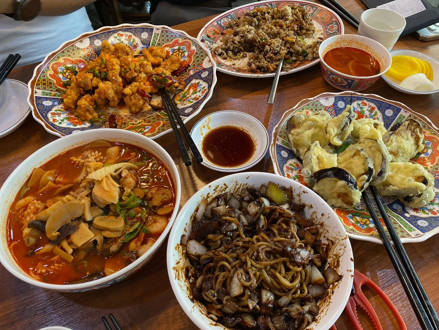 손님이 워낙 많아 음식 조리에 시간이 소요돼서 그런지 대기 중에 메뉴판을 미리 주시더라고요. 주문을 미리 하고 곧 자리가 나면 들어갑니다. 저희는 성인 남자 2, 여자 2이었는데요. 새우볶음밥(11,000원) , 간짜장(9,000원), 삼선짬뽕(12,000원), 가지튀김(19,000원), 깐풍기(33,000원)를 주문해서 총 84,000원이 나왔어요.