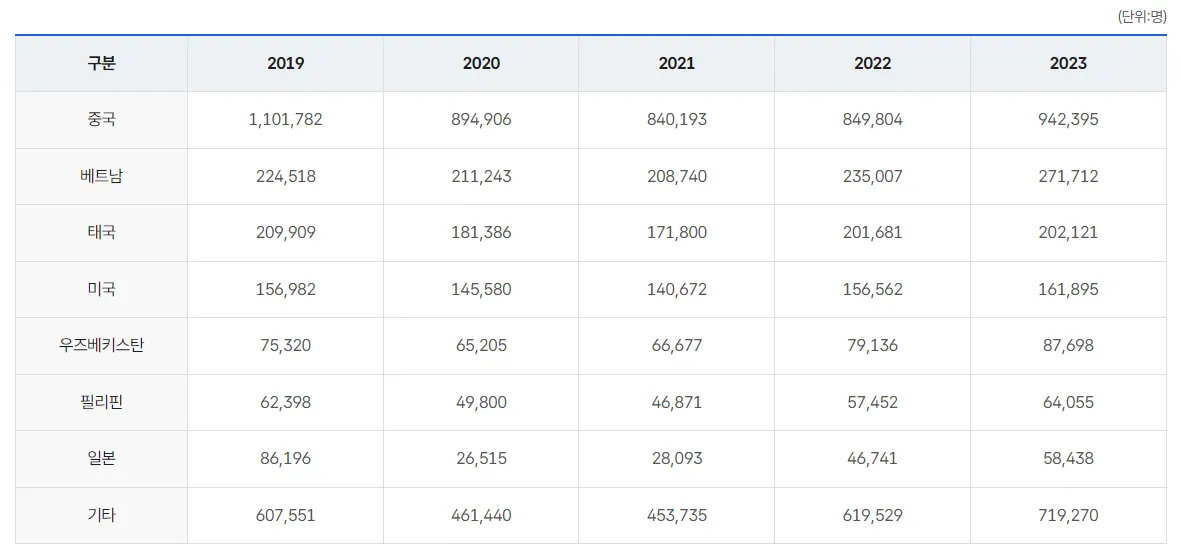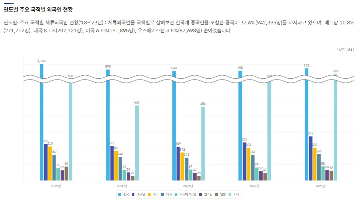 출입국자 한국 거주 외국인 통계 확인하는 방법