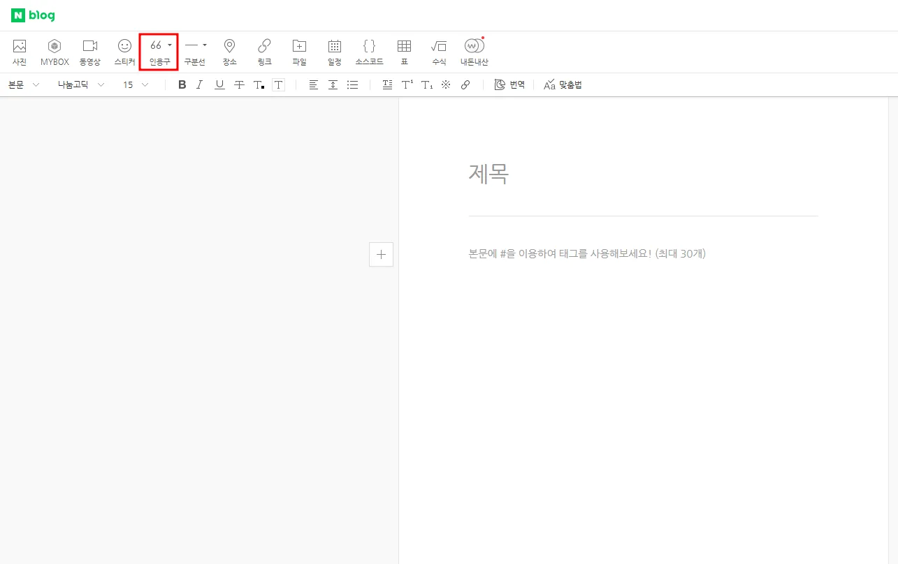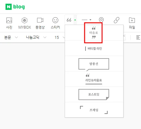 네이버 블로그의 경우 인용구 따옴표가 열림, 닫힘으로 구성이 되어있는데요.